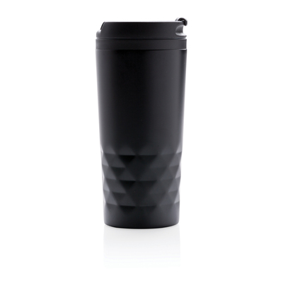 Fashionable stainless steel tumbler with geometric details. Inner body is made out of plastic. Handwash only. Content 300ml.