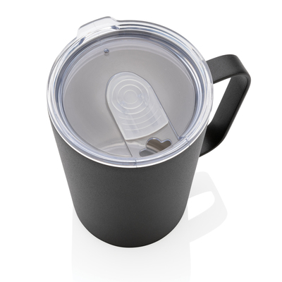 This RCS Recycled stainless steel modern mug features a spill-resistant lid that slides open smoothly to provide the perfect pour. This mug is made with double wall vacuum recycled stainless steel to keep beverages warm for up to 3 hours or cold for up to 6 hours longer. Made with RCS (Recycled Claim Standard) certified recycled materials. RCS certification ensures a completely certified supply chain of the recycled materials. Total recycled content: 88% based on total item weight. BPA free. Capacity 420ml. Including FSC®-certified kraft packaging.