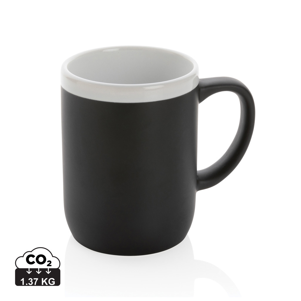This ceramic mug has a clean and simple look for any tabletop. The clean white rim detail adds a beautiful clean touch. The mug has a shiny inner finish and matt outer finish. The mug is dishwasher safe and tested in accordance with EN12875-1 (at least 125 washing cycles for all decoration methods). Packed in a gift box. Capacity 300ml.