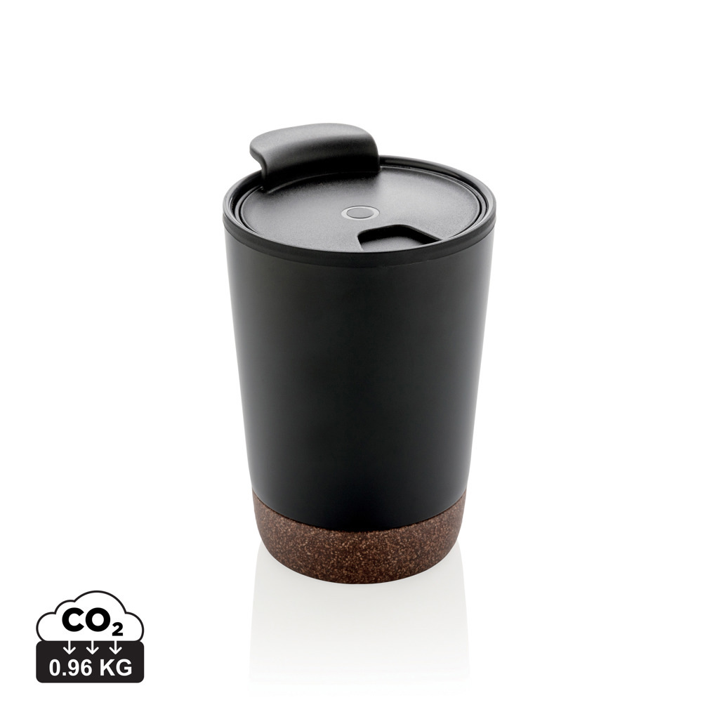 Start your day with your favourite beverage in this double wall coffee mug with recycled plastic inner and unique cork detail. Keeps your drinks warm for up to 3h and cold up to 6h. Made with GRS certified recycled materials. The inner is made from 100% GRS certified PP. GRS certification ensures a completely certified supply chain of the recycled materials. Total recycled content: 52% based on total item weight. BPA free. Capacity 300ml. Including FSC®-certified kraft packaging.