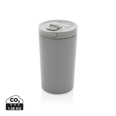 This double wall vacuum leakproof lock mug is the perfect size for your beverage. It's leakproof sealed flip lid is designed for easy open/close and on-the-go use. Vacuum insulation keeps beverages hot for up to 5 hours and cold for up to 15 hours. Made with RCS (Recycled Claim Standard) certified recycled materials. RCS certification ensures a completely certified supply chain of the recycled materials. Total recycled content: 80% based on total item weight. Capacity 300ml. BPA free and hand wash only.