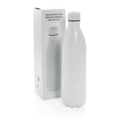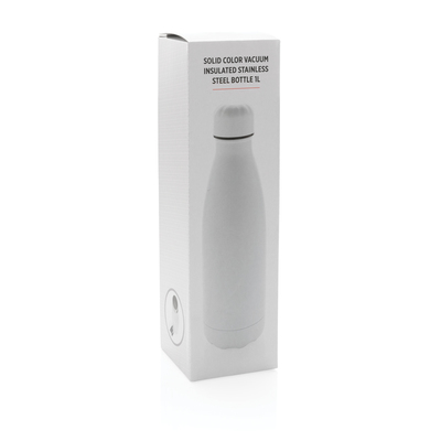 Elevate your daily water intake with this solid colour vacuum insulated stainless steel bottle. The bottle keeps chilled beverages cold for up to 15 hours and hot drinks warm for up to 5 hours. With a base that fits in most cup holders, this sleek looking water bottle will keep you hydrated on the go wherever you are. With its large capacity of 1 litre, it is ideal for a day trip.