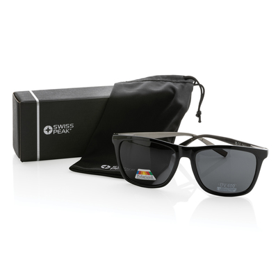 Luxury polarised sunglasses made with RCS certified recycled PC frame and aluminum temples. Total recycled content: 37% based on total item weight. RCS certification ensures a completely certified supply chain of the recycled materials. Including GRS certified recycled RPET sleeve to store the glasses in.The lenses are polarised which eliminates reflecting sunlight, making it ideal for driving a car or during other sunny summer or winter outdoor activities. Conform EN ISO 12312-1, UV 400 and CAT 3. Packed in a FSC® gift packaging.