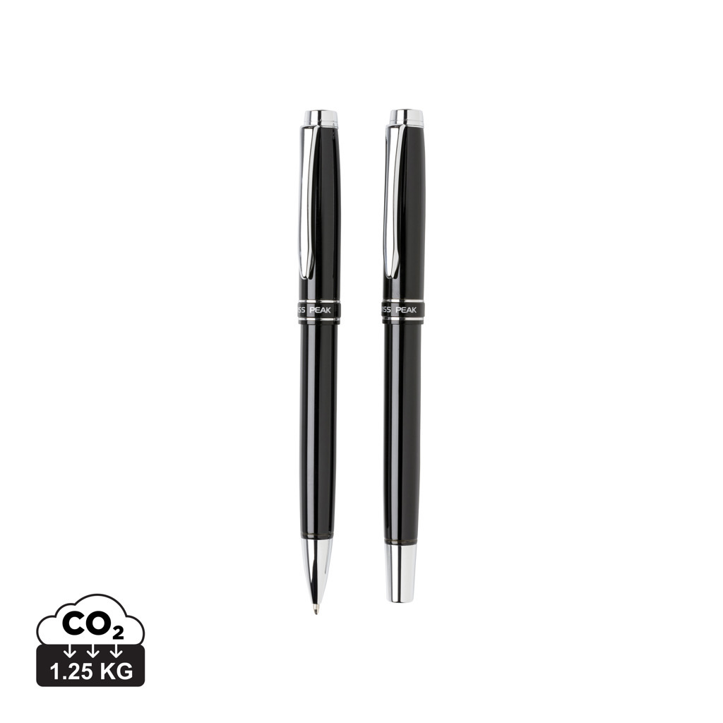 The Swiss Peak Heritage collection speaks the language of modern elegance. Luxury brass metal ballpen and rollerball set packed in Swiss Peak giftbox. Both metal refills with minimum of 1200m writing length and German ink.