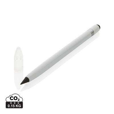 This inkless pen with eraser replaces your traditional wooden pencil. It has a writing length of up to 20.000 metres using a graphite tip to produce a graphite line. It features a clean and modern look with the aluminum and on the top you will find an eraser.