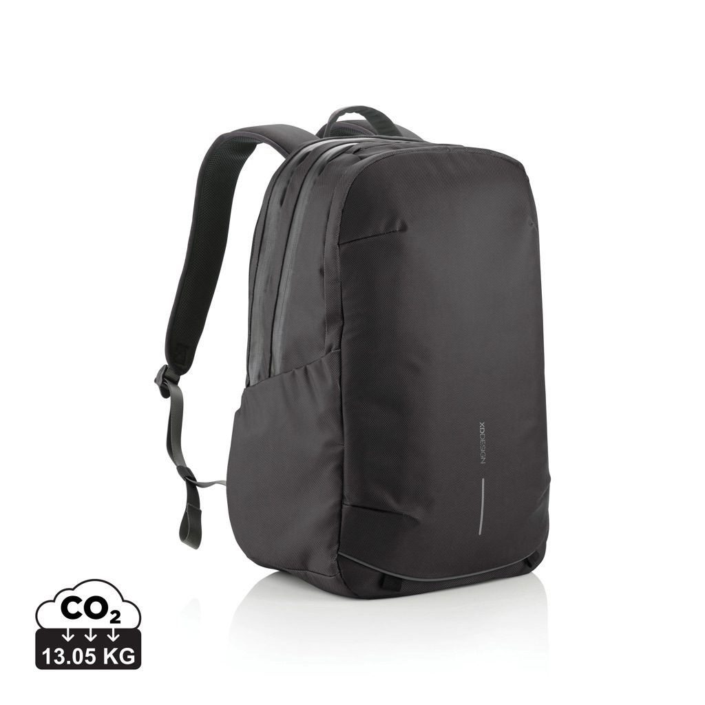 Ready to unplug and explore? Embark on your adventures with the Bobby Explore – effortlessly transitioning from daily commutes to weekend getaways. Built for durability and weather resilience, this backpack elevates safety and comfort. Safeguard your professional essentials with concealed, water-repellent zippers, a padded laptop pocket, and an interior RFID safety pocket. Experience enhanced comfort through the padded back panel and adjustable chest strap, promoting breathability and better posture. Conveniently store your belongings with the expandable front pocket and an additional compartment for shoes, or even damp clothes. Discover integrated features like a USB charging port, a stylish magnetic zipper puller, a quick-access top pocket, and an external bottle holder. Crafted from R-pet fabric with the AWARE™ tracer. With AWARE™, the use of genuine recycled fabric is guaranteed. 46% recycled content. Registered design®