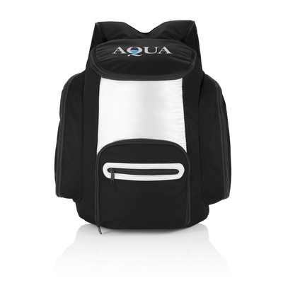 600D cooler backpack with silver lined insulation inside to keep all your food and beverages cold. On the front there’s an additional zipped pocket for storing your other belongings.