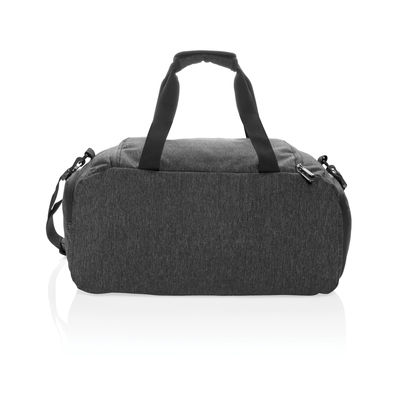 This 900D comfortable sized duffle bag is perfect for every active adventure and workout at the gym. It's made from durable polyester fabric and features water resistant coating material to protect against dirty gym floors or wet fields. Detailed with reinforced handles and a padded shoulder strap that offers a versatile carrying option. This duffle features a roomy main compartment with an inside zipper pocket to hold cash or valuables plus a breathable pocket for your shoes. A front zipper pocket with convenient storage for your cell phone, keys and other frequently used accessories. PVC free.