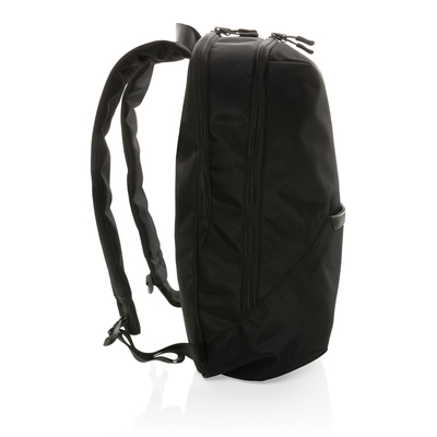 Look sharp in and out of the office with this sleek looking minimalistic design backpack. The backpack features a separate 15.6 inch laptop compartment and a zipper front pocket. The exterior material and lining is made with recycled polyester. With AWARE™ tracer that validates the genuine use of recycled materials. Each bag has reused 32.7 0.5L PET bottles. 2% of proceeds of each Impact product sold will be donated to Water.org. PVC free.