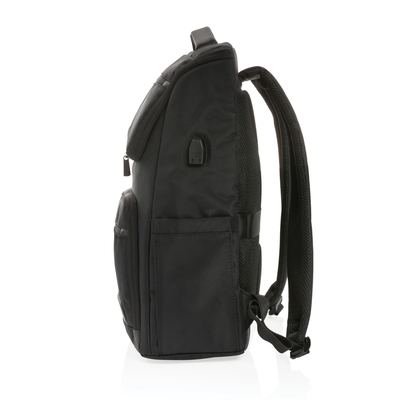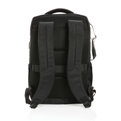 Make the daily commute a little bit easier and a lot more stylish with this laptop backpack. The bag is made from durable 1680D recycled polyester fabric with rich PU details and features a well designed shape with multiple pockets for storage and organisation. In addition to the roomy main compartment, this backpack features a padded 15.6" laptop pocket and an additonal zipper pocket to hold your other daily essentials. Other features of this backpack include a USB output, RFID pockets, pen loops, a detachable luggage tag and a side water bottle pocket. Exterior: 100% 1680D polyester / Lining: 150D recycled polyester. With AWARE™ tracer that validates the genuine use of recycled materials. Each bag has reused 49.92 0.5L PET bottles. 2% of proceeds of each product sold containing AWARE™ will be donated to Water.org.