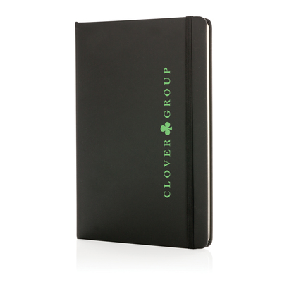 Ruled A5 hardcover PU classic notebook with elastic closure and black bookmark ribbon. 144 pages of 70g/m2 paper inside. Cream coloured pages.