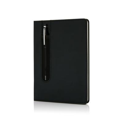 The perfect combo: A5 PU notebook with pen sleeve and a metal stylus pen. Packed in giftbox. 160 pages of 80g/m2 paper Inside.
