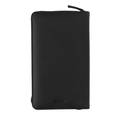 Luxury travel wallet with RFID protection keeps all your travel documents such as passport, tickets and money safe. With 4 slots for cards, a pen loop and space for your mobile phone. Made with RCS (Recycled Claim Standard) certified recycled materials. RCS certification ensures a completely certified supply chain of the recycled materials. Made with 100% recycled RCS certified recycled PU. Total recycled content: 21% based on total item weight. PVC free.
