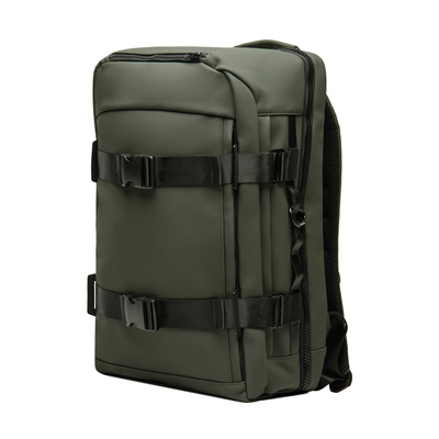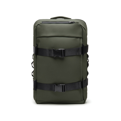 The ultimate companion for your adventures. Crafted with partly RCS certified recycled polyester. The exterior features a sleek PU finish, with mesh backing on the shoulder straps and back for maximum comfort. Designed for convenience, the bag can be fully opened for easy access. With multiple smart features, it offers a laptop compartment, two exterior pockets and a roomy mesh section inside to keep your gear organised. A sturdy top handle and a carabiner to secure smaller items. The clever strap at the back allows easy attachment to a trolley bag. A side zipper offers convenient access to the main mesh compartment. This is the ideal backpack for both daily commutes and weekend adventures. Certified by RCS (Recycled Claim Standard), RCS certification guarantees that the entire supply chain of recycled materials is certified. The total recycled content is based on the overall product weight. This product contains 16% RCS certified recycled polyester.