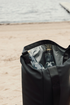 A spacious cooler bag with a modern roll-top design that combines both style and function. The top folds and rolls down to close securely, helping to keep the cold in. Features a deep outer pocket for quick access to small items and a shoulder strap for comfortable carrying. The cooler is lined with PEVA insulation to keep contents cold for longer.Certified by RCS (Recycled Claim Standard), RCS certification guarantees that the entire supply chain of recycled materials is certified. The total recycled content is based on the overall product weight. This product contains 23% RCS certified recycled polyester.