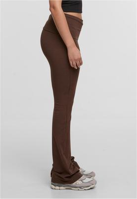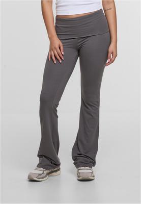 These trousers combine a feminine silhouette with maximum comfort. The design features a slim fit through the thighs that transitions into a striking flare towards the hem. A standout detail is the extra-wide elasticated waistband, which ensures an optimal fit and a flattering emphasis on the waist. Thanks to the elastic fabric, these pants offer unrestricted freedom of movement, making them perfect for both relaxed everyday wear and athletic outfits.