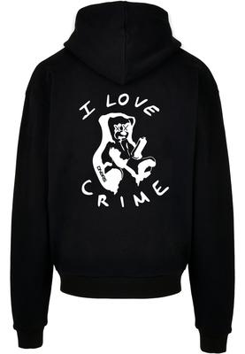 This DNGRS hoodie captures a rebellious street vibe. While the front remains minimalist, the back features a bold, large-scale graphic with the provocative "I Love Crime" lettering and a masked character. Its comfortable fit, classic kangaroo pocket, and soft interior make this hoodie the perfect companion for laid-back days with a strong visual statement.