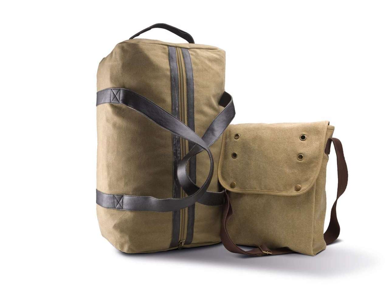 - Cotton canvas satchel with adjustable shoulder strap, vintage look, buckles and eyelets in old copper finish, 1 inside pocket