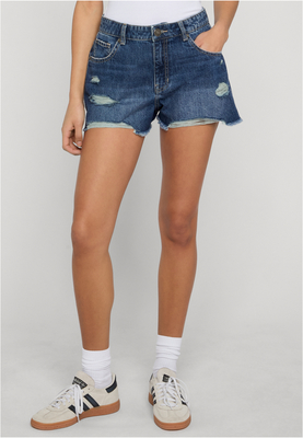 These ladies' destroyed denim shorts are a pair of short denim shorts with a comfortable fit. They feature destroyed details and a casual silhouette. A must-have for a cool and relaxed summer look. Available in various colors.