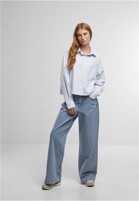 The Ladies Striped Oxford Shirt is an elegant statement piece that combines the classic look of Oxford fabric with a subtle stripe pattern and a modern cut. It represents the clean and simple design philosophy of URBAN CLASSICS, which foregoes elaborate prints and focuses on quality and individual character. The stripes give the shirt a timeless accent and make it a versatile must-have for a stylish, urban wardrobe.