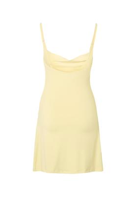 Ladies Mini Waterfall Neckline Dress paleyellow M