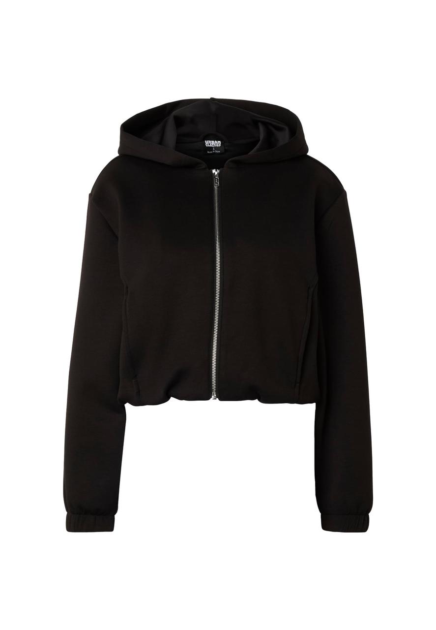 This ladies' scuba zip hoodie is a sporty hoodie with a zipper and a loose fit. The scuba material gives it a smooth surface and a modern silhouette. It is the perfect choice for a casual and comfortable everyday look. Available in various colors.