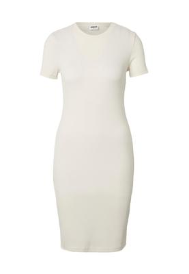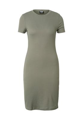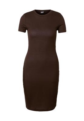 This ladies' basic slim fit T-shirt dress is a simple, form-fitting dress that ends above the knee. The tight cut and ribbed structure accentuate the feminine silhouette, while the crew neck and short sleeves provide a classic look. Available in various colors.